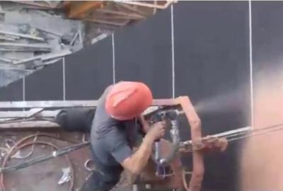 多功能噴涂機真石漆噴涂工地施工現場演示……